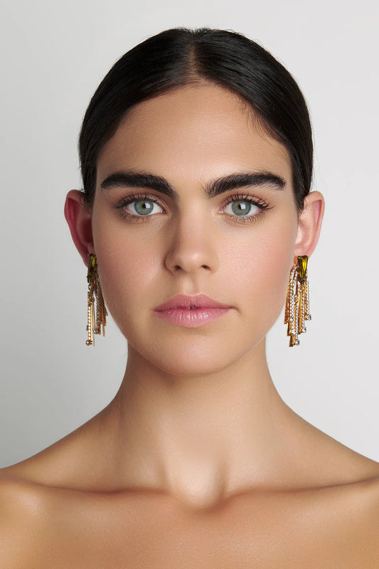 Nicole Romano - Hulin Crystal Baguette Bar & Chain Fringe Earring