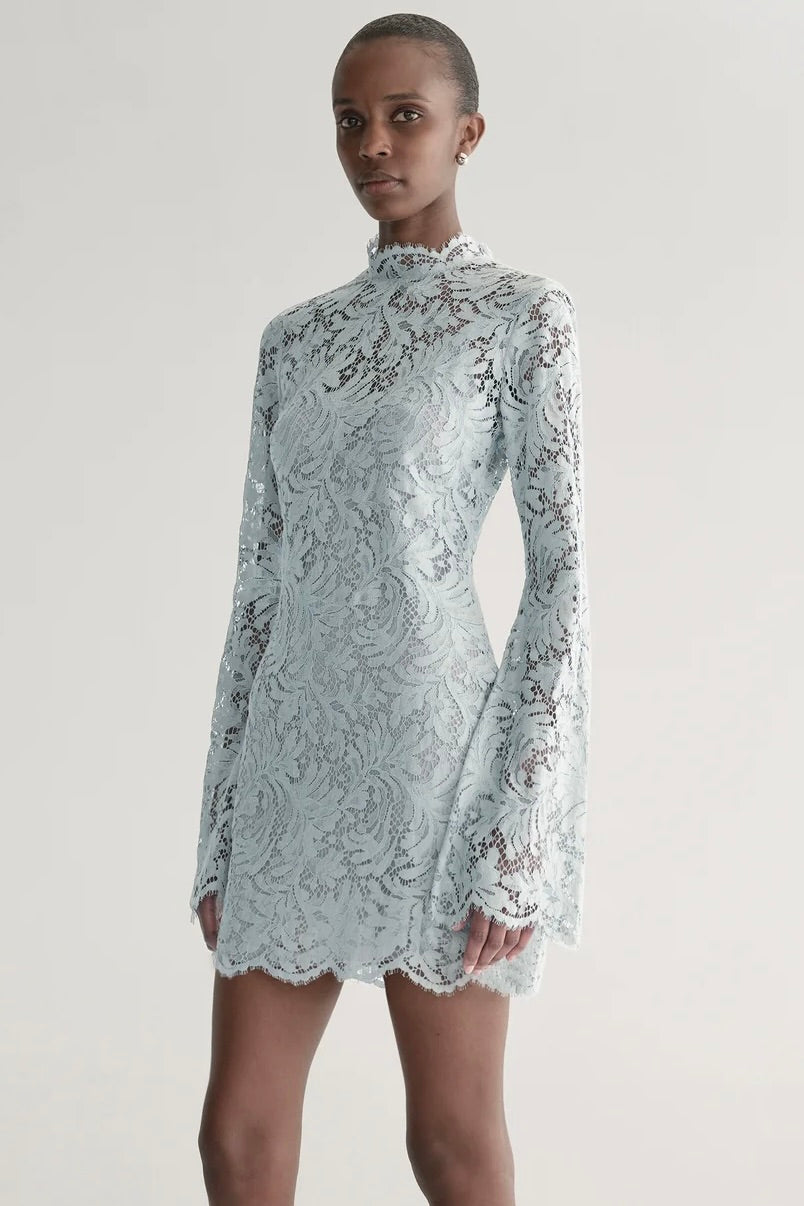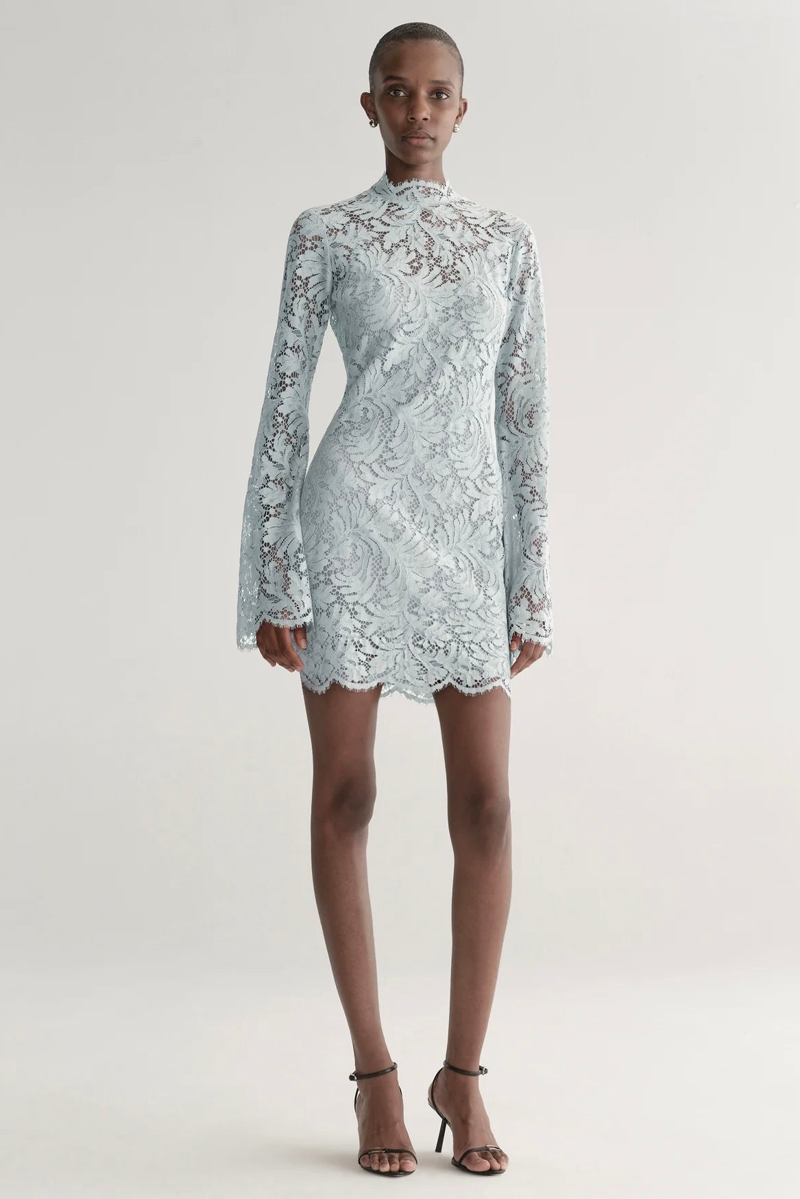 The Eden Dress is a modern interpretation of classic lace. Cut from archival French lace with a botanical-inspired pattern, this streamlined long-sleeve mini feels refined yet forward. Finished with scalloped edges and a built-in slip, it’s a wearable statement for cocktails, dinners, or evening events.
