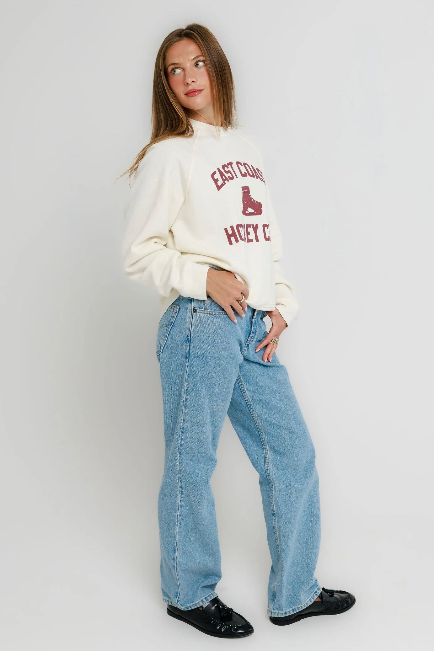 The East Coast Hockey Club Raglan Crew channels vintage varsity charm with a cozy, nostalgic twist. It feels like crisp rink nights, cheering from the stands, and that unmistakable East Coast energy you’ll want to wear on repeat.