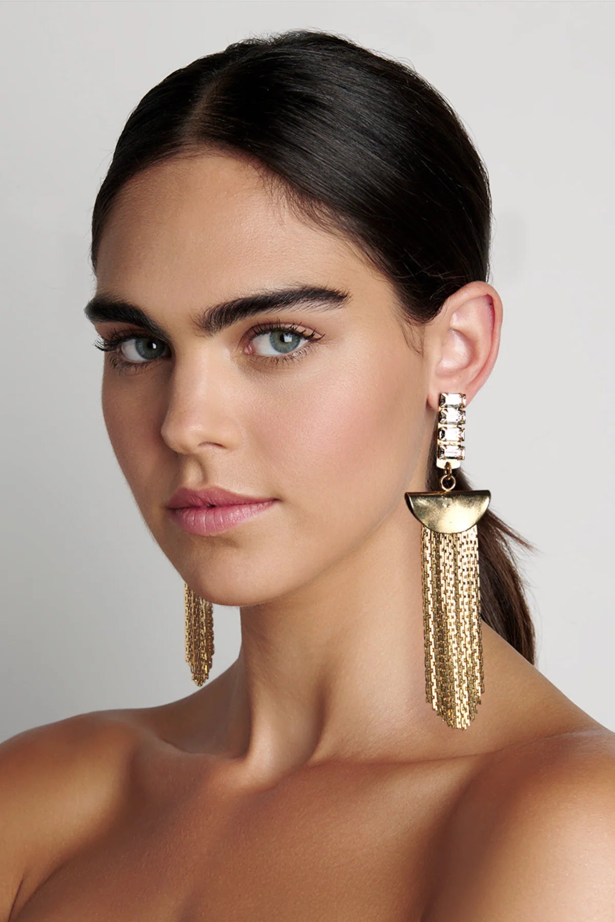 Nicole Romano - Hulin Crystal Baguette Bar & Chain Fringe Earring