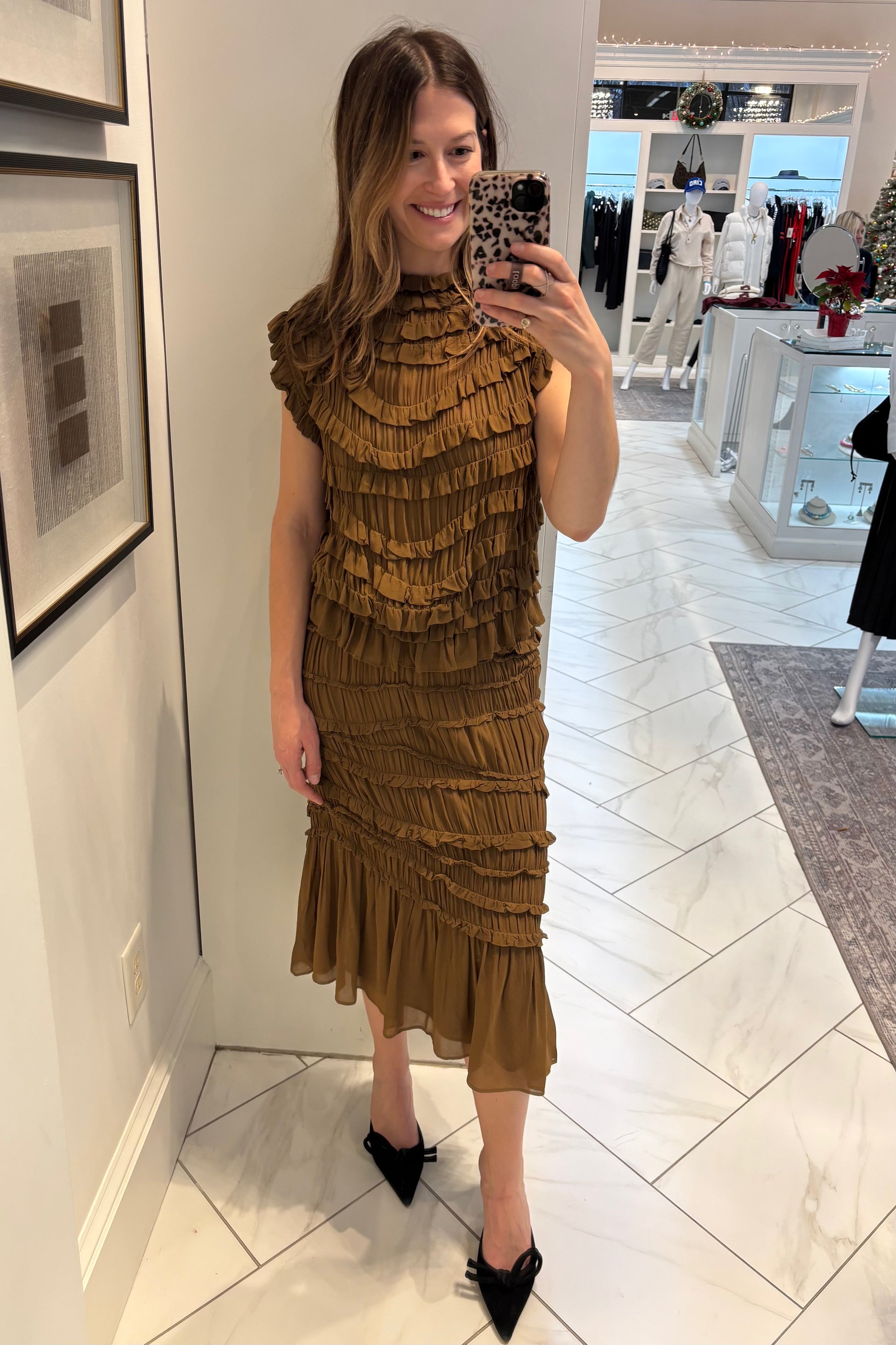 Ruffled mock neck