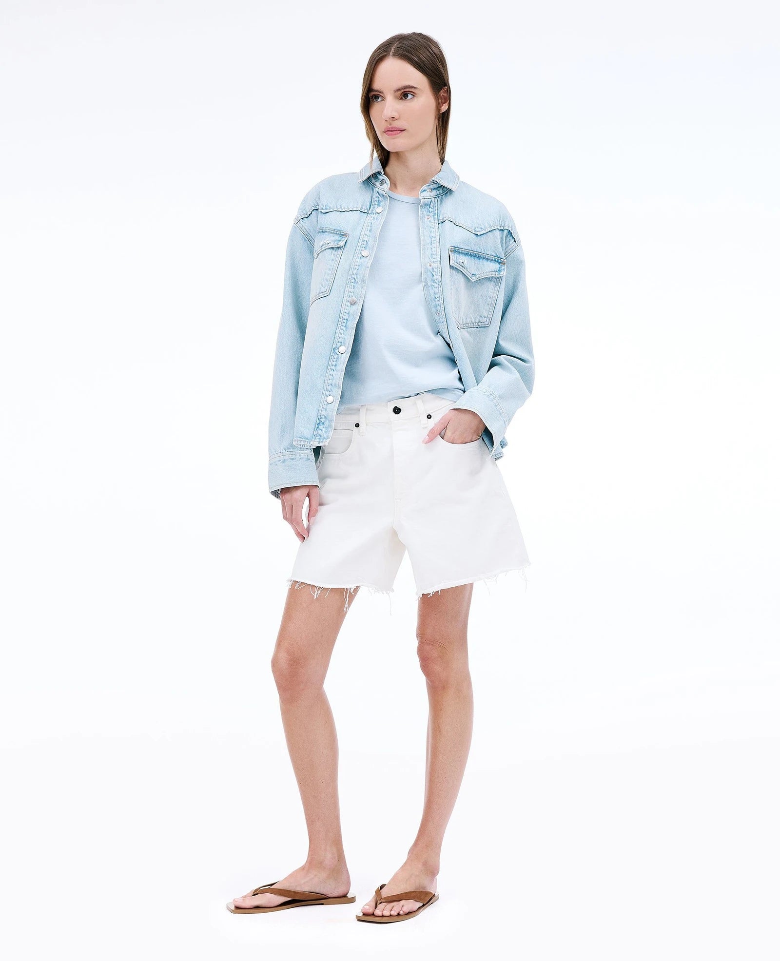 Sienna is a cut-off short with a relaxed style, crafted with a raw hem for a effortless yet refined look.