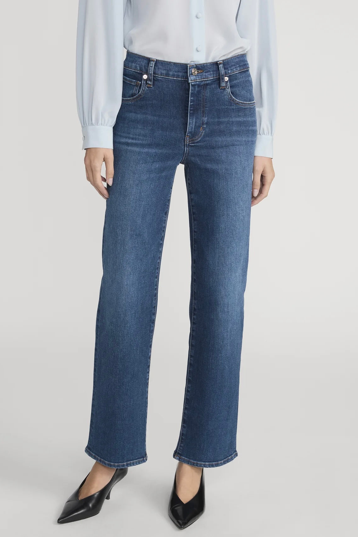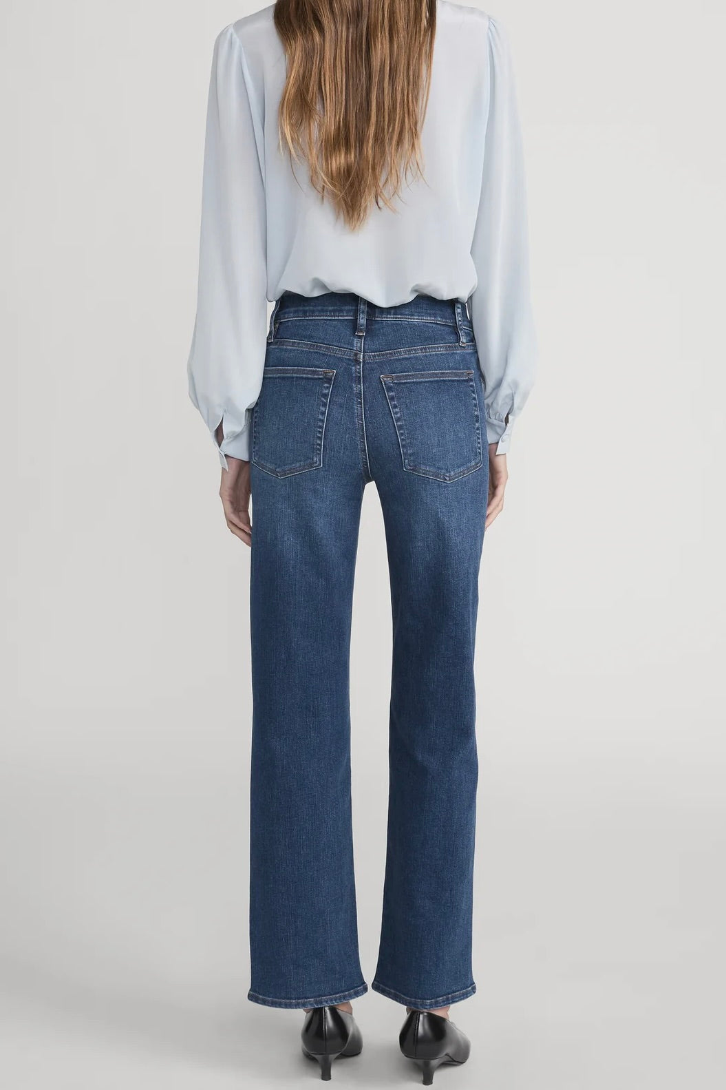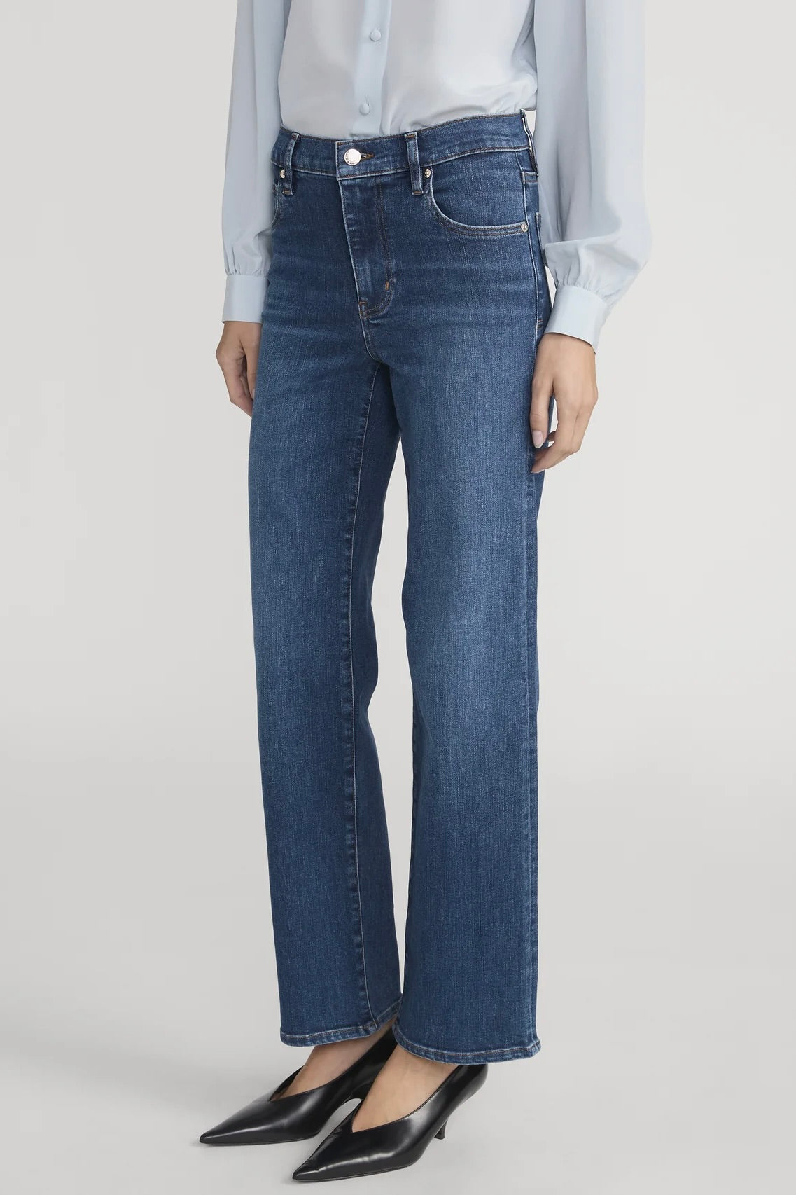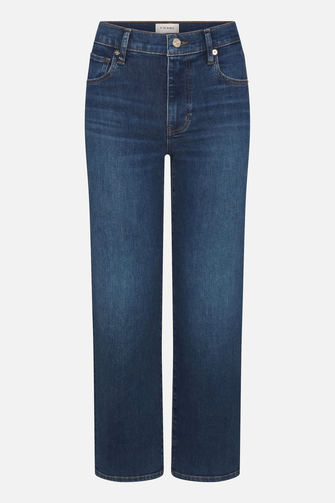 Relax in your next must-have super-stretch jean. Featuring a true mid-rise, ankle-length inseam, frayed raw hem and slim wide leg, the Mellow is emblematic of the next generation of FRAME.