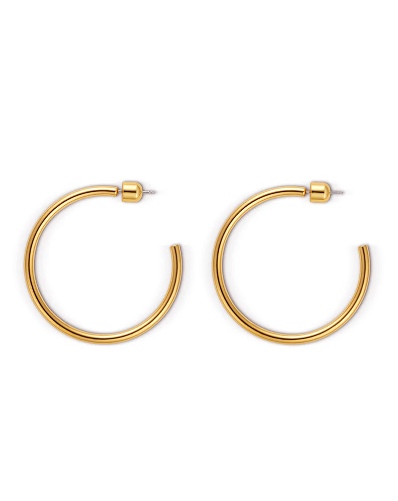 Our take on the classic wire hoop earring is made from solid brass and is dipped in 14k gold.